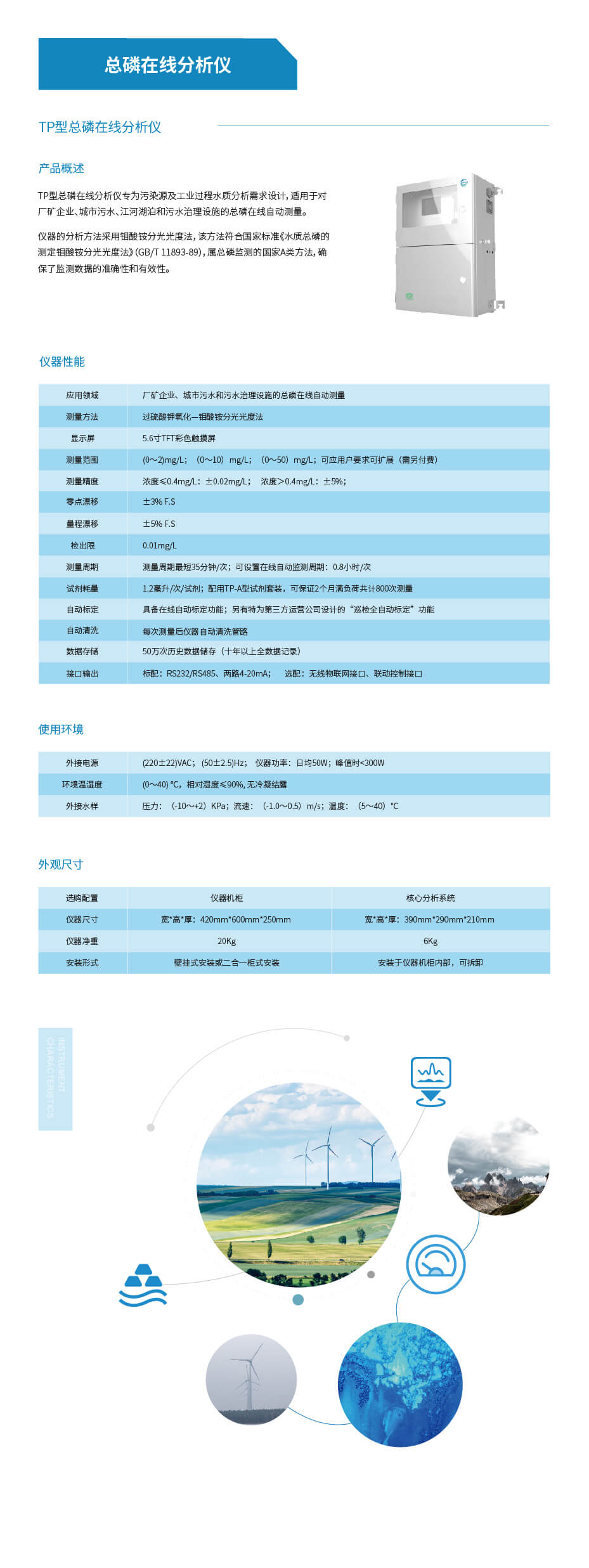 TP型总磷在线分析仪专为污染源及工业过程水质分析需求设计,适用于对厂矿企业、城市污水、江河湖泊和污水治理设施的总磷在线自动测量。仪器的分析方法采用钼酸铵分光光度法,该方法符合国家标准《水质总磷的测定钼酸铵分光光度法》(GB/T 11893-89),属总磷监测的国家A类方法,确保了监测数据的准确性和有效性。